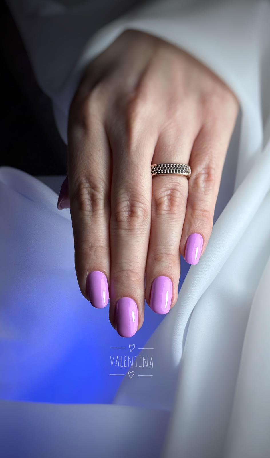 Applica uno strato sottile di “Semipermanente Brilliant Lavander ” e polimerizza con base LED/UV.